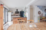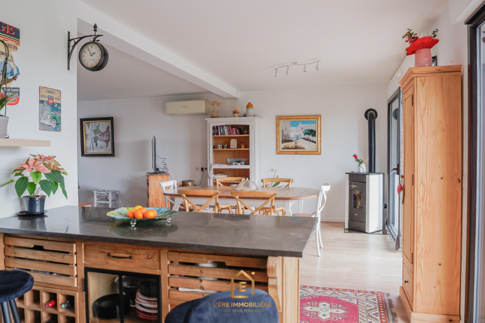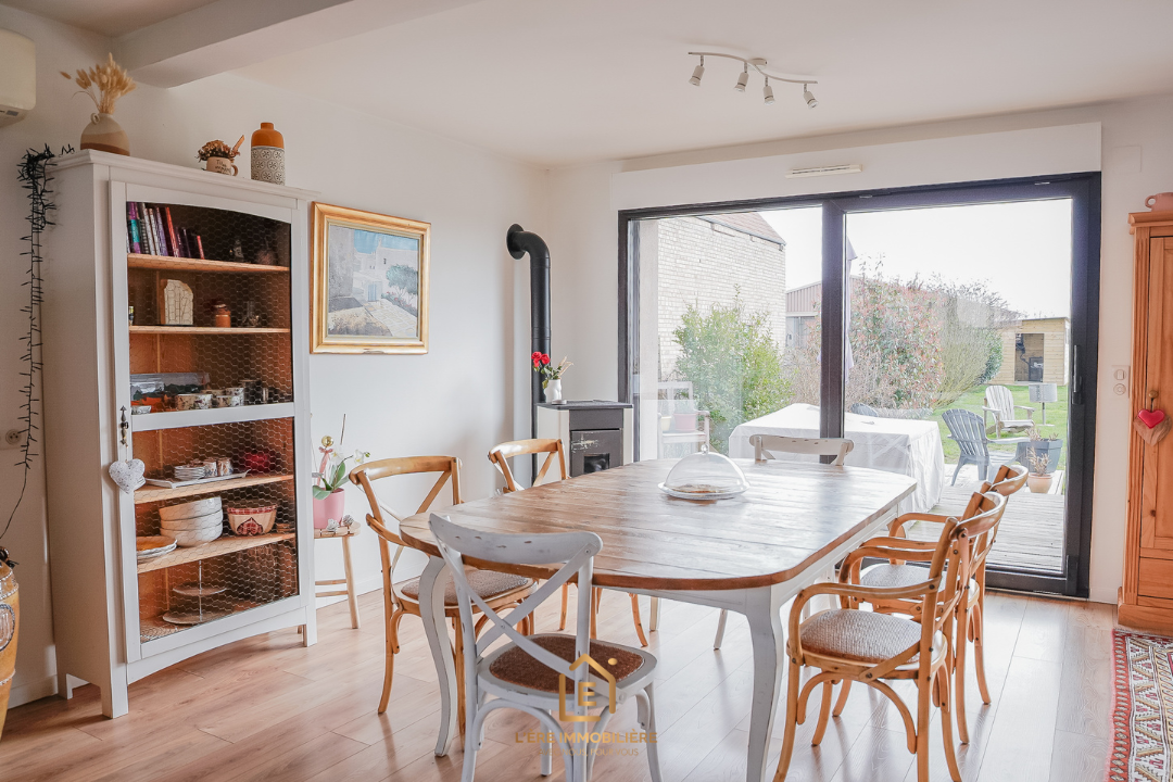Un spacieux et lumineux salon-séjour de 37m², offrant une ambiance chaleureuse grâce à son poêle.