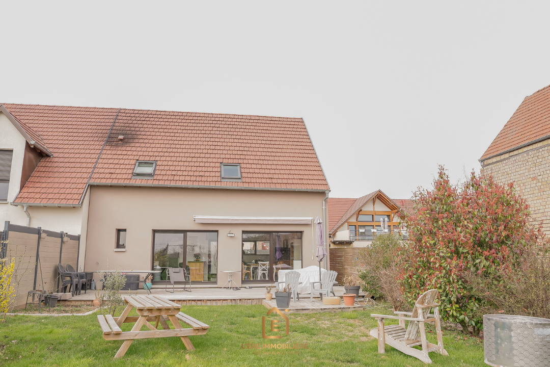 En exclusivité, découvrez cette charmante maison de 120m² au sol (108m² habitables) sur un terrain de 4.94 ares, située à Duttlenheim, à 20min de Strasbourg.