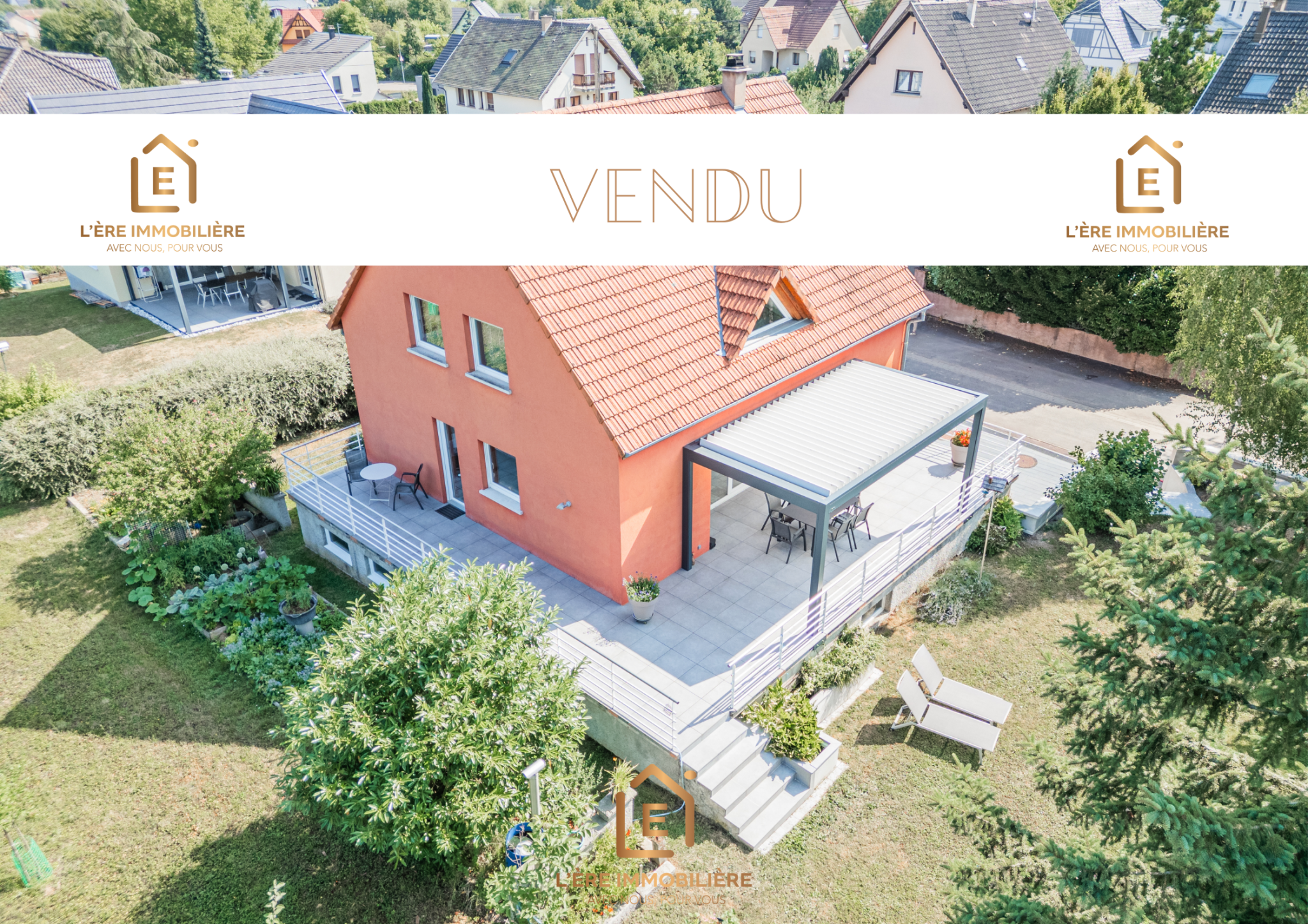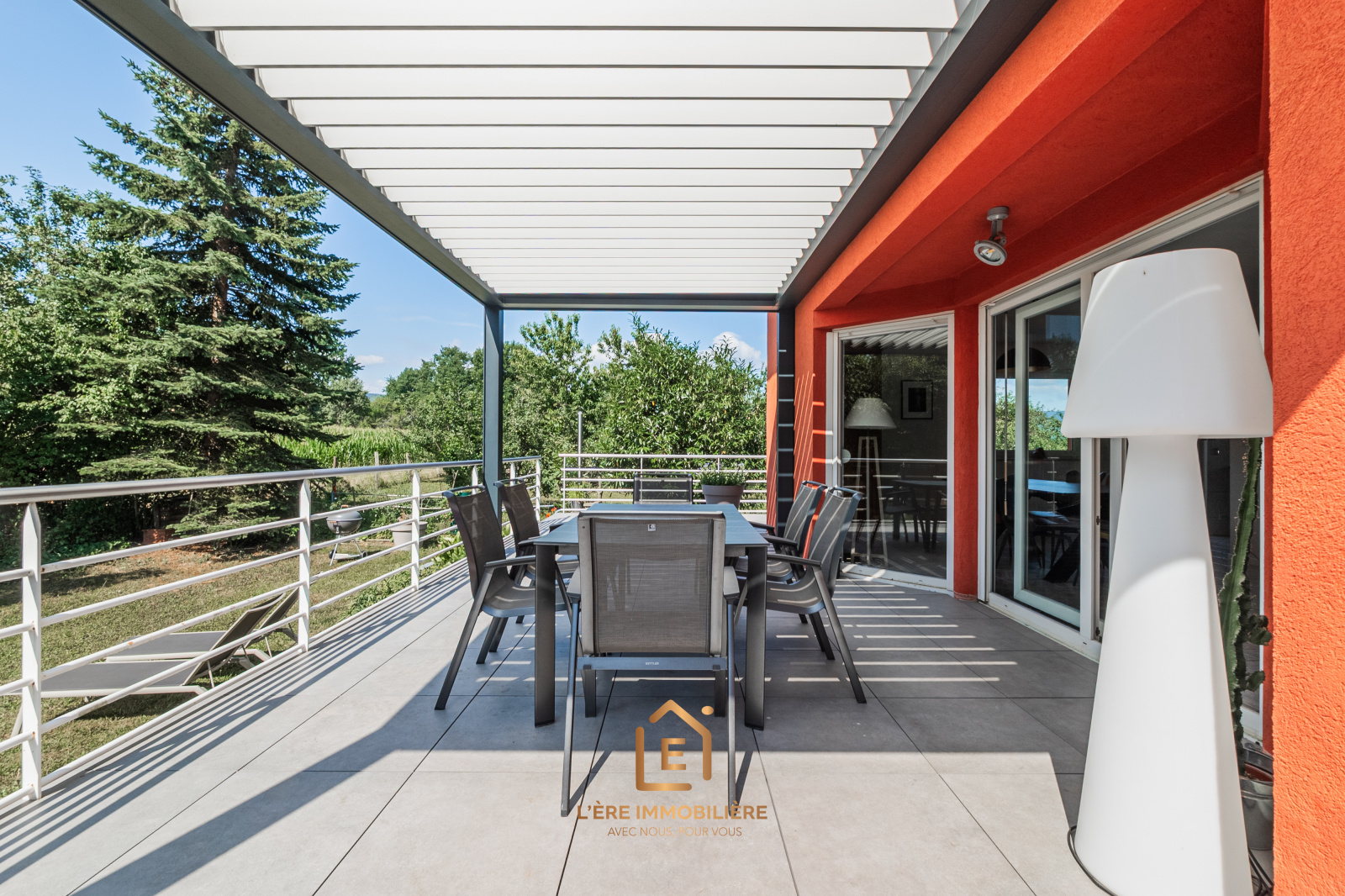 - Une grande terrasse de 64 m2 avec pergola bioclimatique store et lumière intégré parfait pour vos repas en extérieur.